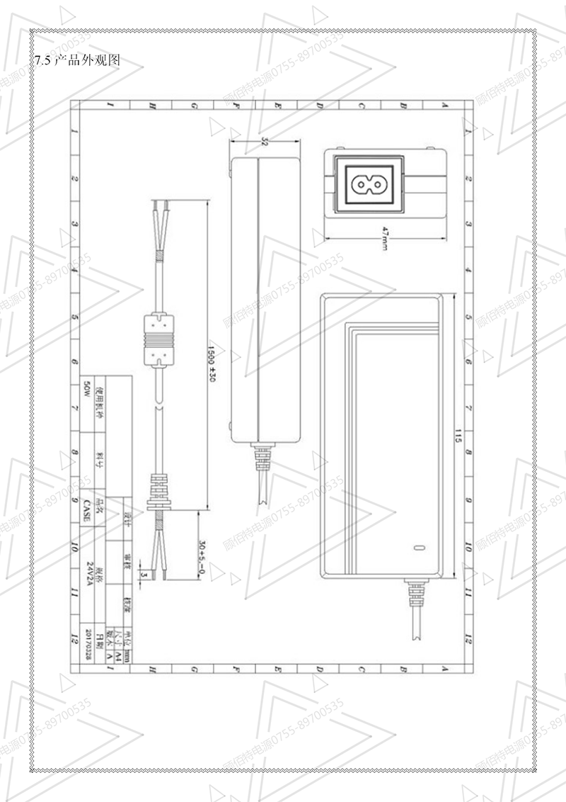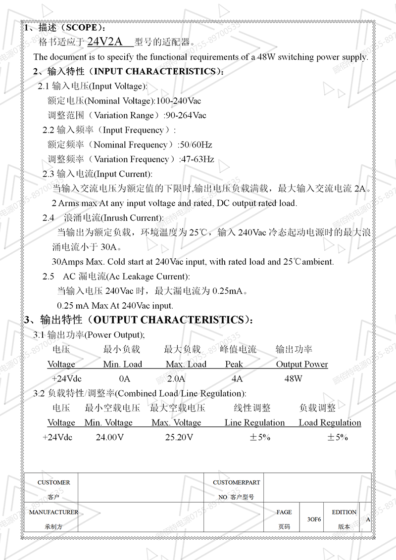 24V2A電源適配器規格書